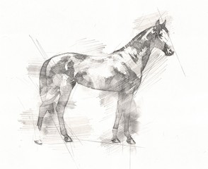Boy drawing horse male. 50 images per month. Pencil sketch of a horse.