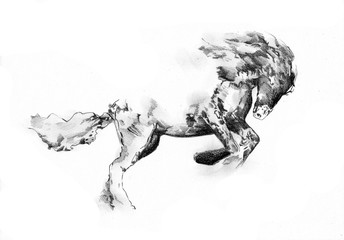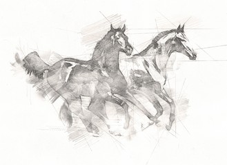 Pencil sketch of running horse. Big Canvas Paintings For Home Decor. Prices and download plans.