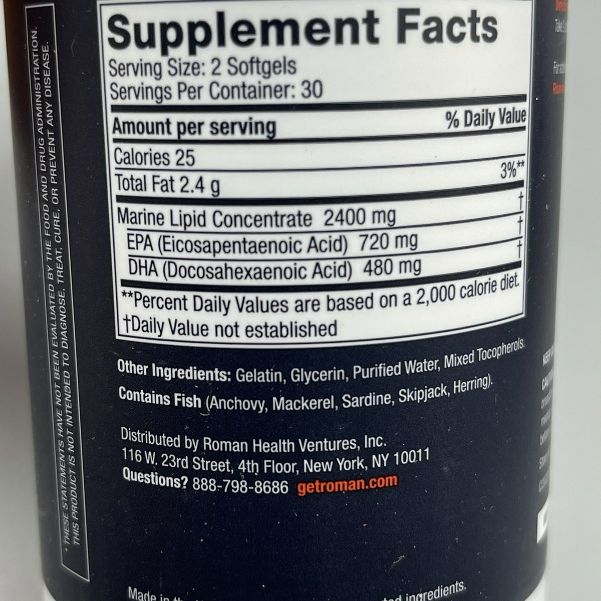 Roman Heart Health Fish Oil Mens Supplement 60 Softgels 2pk Exp 12 22 Ebay